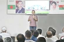 AFP reporters at the scene described the crowd singing the national anthem and listening to speeches, while on the other side of the canal bank, a line of police cars waited.