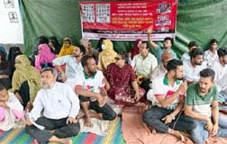 C T Online Desk: Sarwar Jahan Jewel Mymensingh : Members of the ‘July Fighters and Martyrs’ Family’ are holding a hunger strike to demand the immediate arrest of visible fascists in Mymensingh and the security of the families of martyrs and injured. The hunger strike, which began at noon on Sunday (October 5), is continuing for the second day in front of the Mymensingh Divisional Commissioner’s Office.