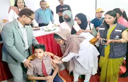C T Online Desk: Oct 12 2025 – A month-long Typhoid vaccine campaign was inaugurated today, targeting 24.59 lakh children in the city and 15 upazilas of the district.