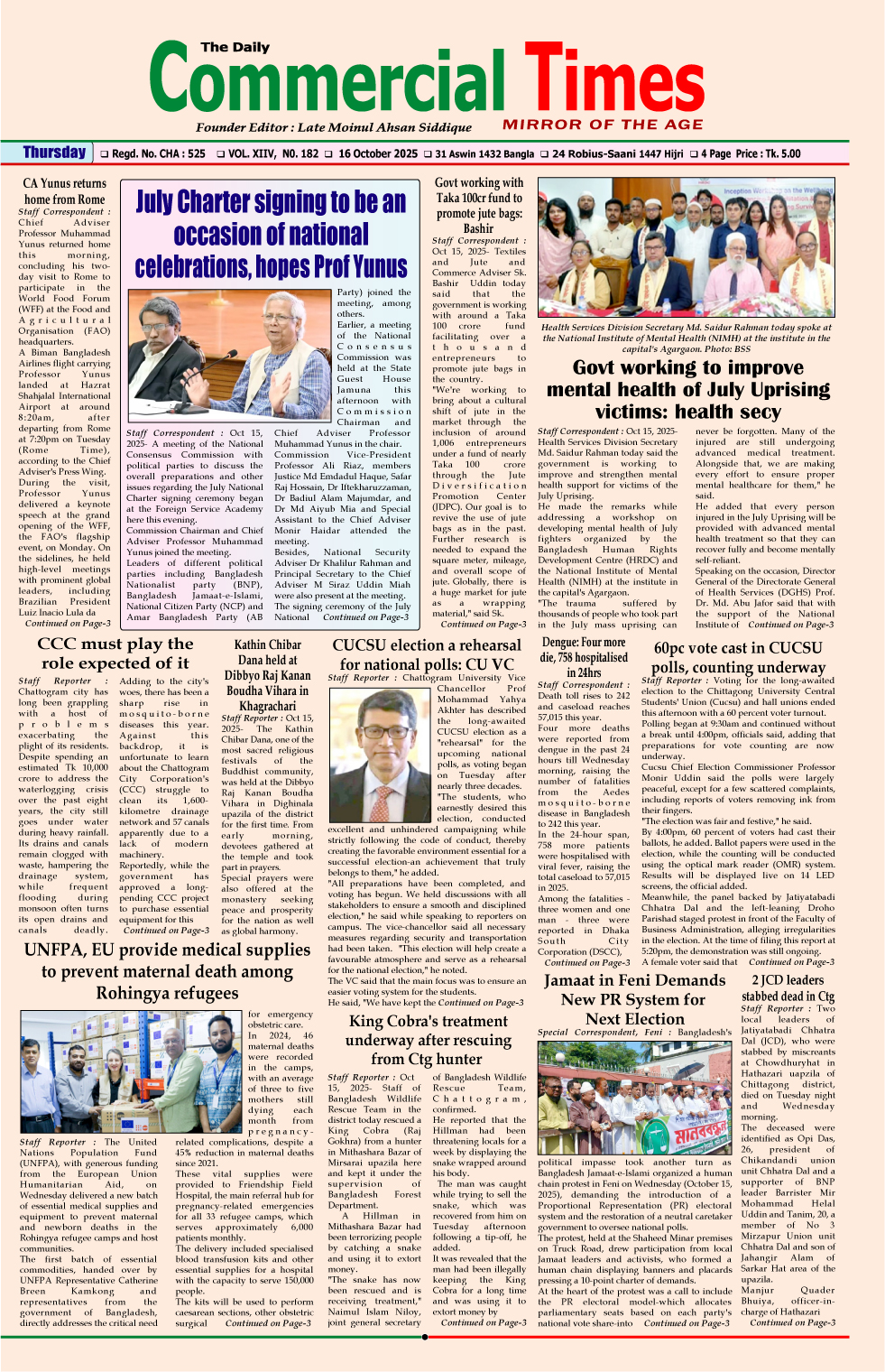 E-PAPER 16 October 2025 : Page-1 October 15, 2025 Share Facebook Twitter Google+ Linkedin Email Print