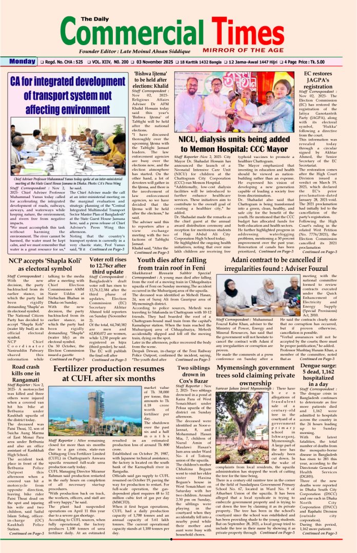 E-PAPER 03 November 2025 : Page-1 November 2, 2025 Share Facebook Twitter Google+ Linkedin Email Print