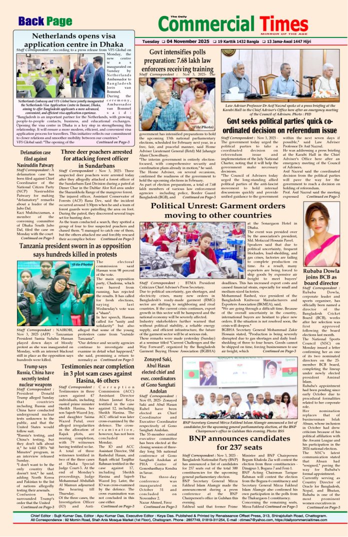 E-PAPER 04 November 2025 : Page-4 November 3, 2025 Share Facebook Twitter Google+ Linkedin Email Print