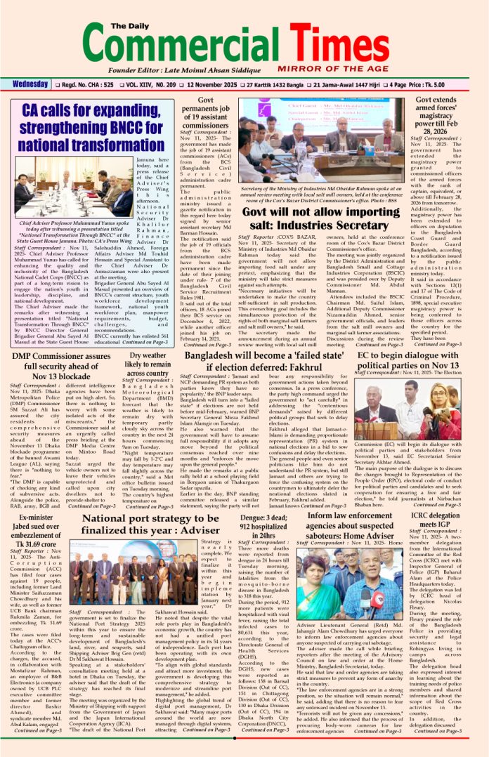 E-PAPER 12 November 2025 : Page-1 November 11, 2025 Share Facebook Twitter Google+ Linkedin Email Print