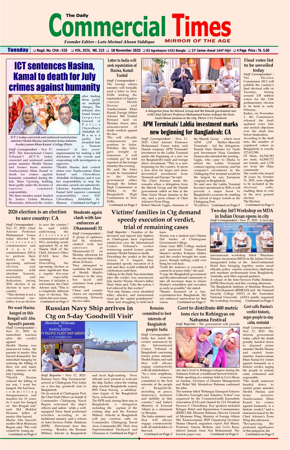 E-PAPER 18 November 2025 : Page-1 November 17, 2025 Share Facebook Twitter Google+ Linkedin Email Print