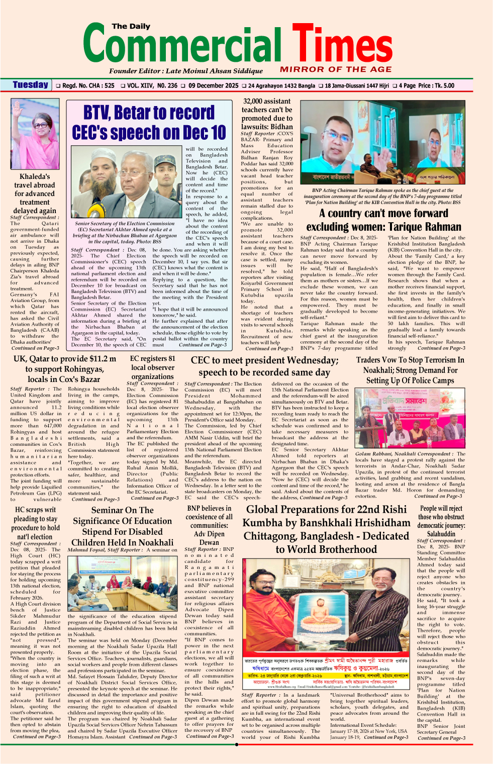 E-PAPER 09 December 2025 : Page-1 December 8, 2025 Share Facebook Twitter Google+ Linkedin Email Print