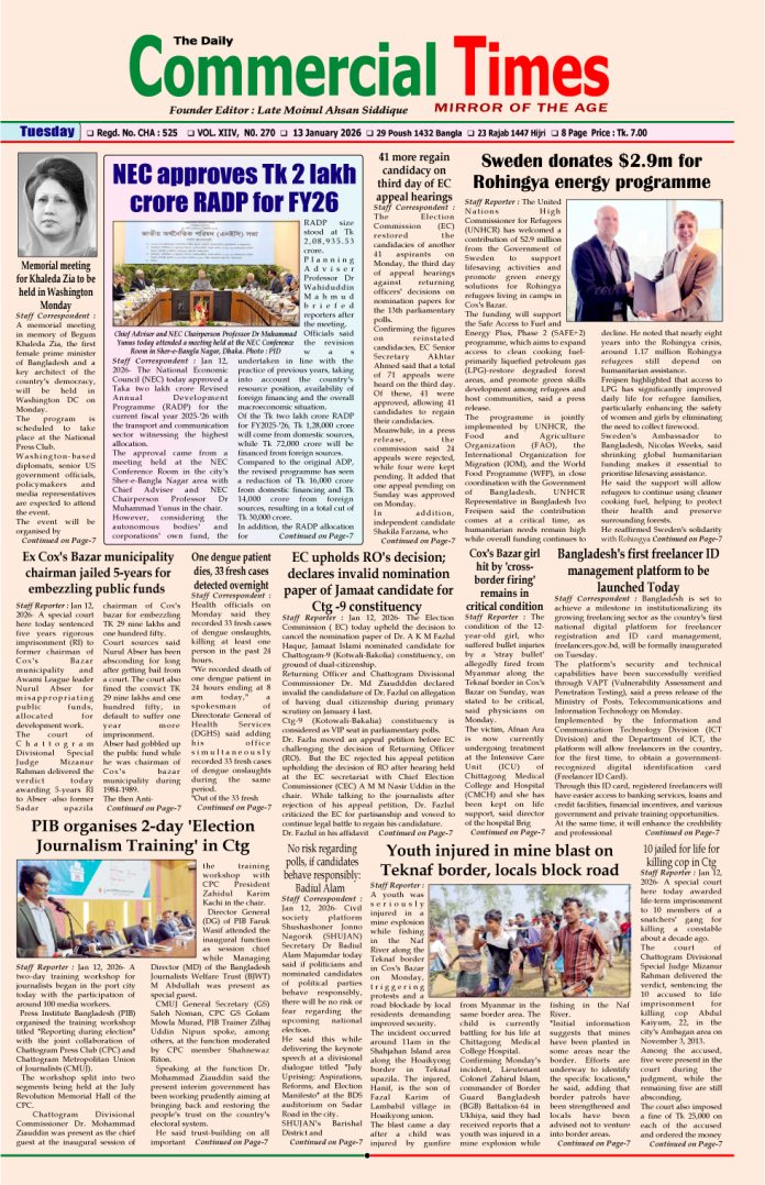 E-PAPER 13 January 2026 : Page-1 January 12, 2026 Share Facebook Twitter Google+ Linkedin Email Print