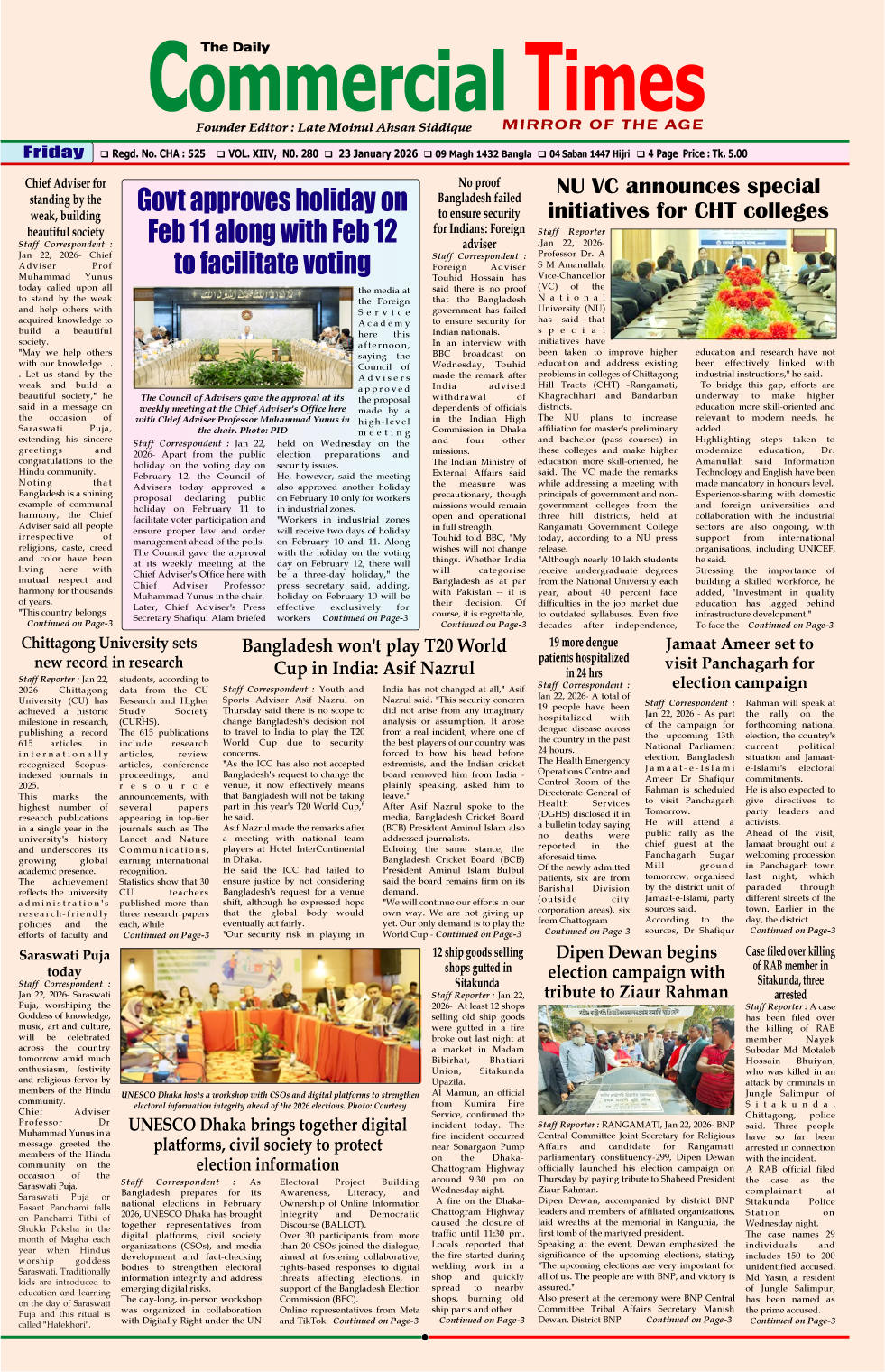 E-PAPER 23 January 2026 : Page-1 January 22, 2026 Share Facebook Twitter Google+ Linkedin Email Print