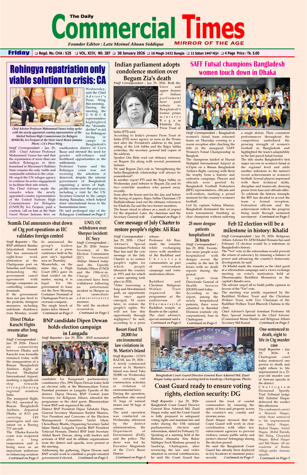 E-PAPER 30 January 2026 : Page-1 January 29, 2026 Share Facebook Twitter Google+ Linkedin Email Print