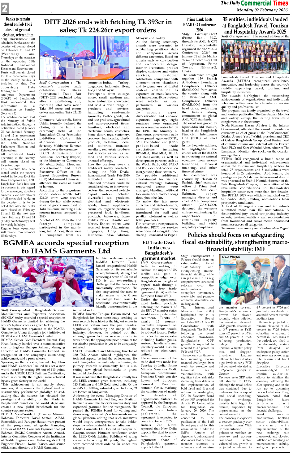 E-PAPER 02 February 2026 : Page-2 February 1, 2026 Share Facebook Twitter Google+ Linkedin Email Print