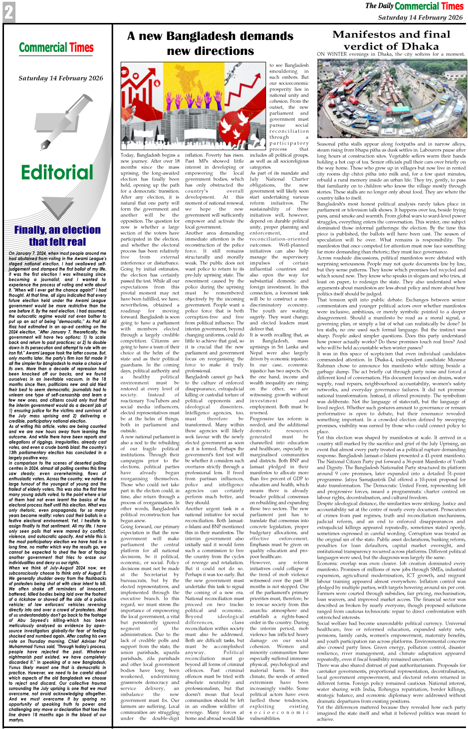 E-PAPER 14 February 2026 : Page-2 February 13, 2026 Share Facebook Twitter Google+ Linkedin Email Print