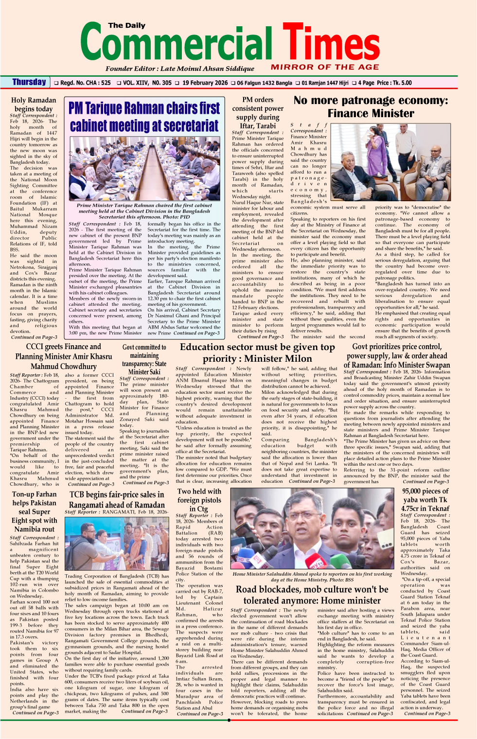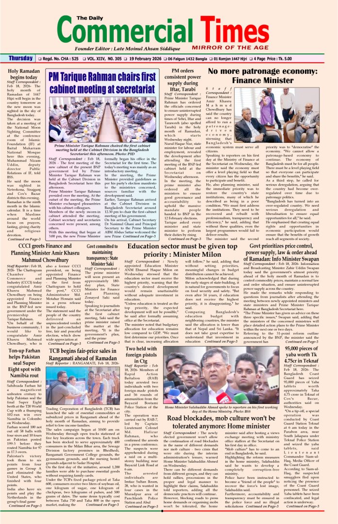E-PAPER 19 February 2026 : Page-1 February 18, 2026 Share Facebook Twitter Google+ Linkedin Email Print