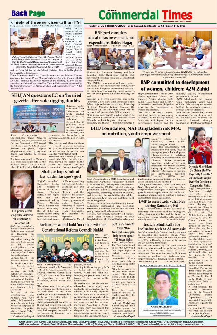 E-PAPER 20 February 2026 : Page-4 February 19, 2026 Share Facebook Twitter Google+ Linkedin Email Print