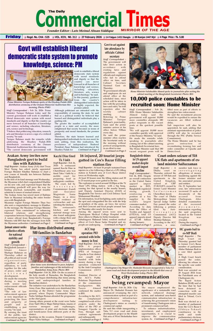 E-PAPER 27 February 2026 : Page-1 February 26, 2026 Share Facebook Twitter Google+ Linkedin Email Print