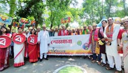 The procession began at 10:40 am from Smaran Chattar (Zero Point) on the campus and concluded at Jarul Tala. This year’s theme of the celebration was “Eso Praner Utshobe, Jago Nobo Anonde”.