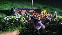 The accident occurred around 3:00am on Monday night in the Hasanpur area on the Dhaka–Chattogram highway, when a rice-laden truck lost control and fell into a roadside ditch.