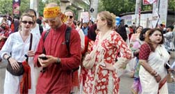 Norwegian Ambassador to Bangladesh Haakon Arald Gulbrandsen joined the procession in the Dhaka University area. He later shared photos on social media and wished everyone a happy New Year.