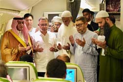The Prime Minister joined a munajat (prayer) inside the aircraft, seeking blessings of Almighty Allah for successful accomplishment of the Hajj rituals.