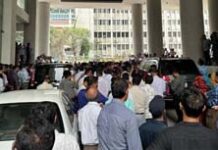 C T Online Desk: Three to four hundred employees from various ministries gathered in protest.